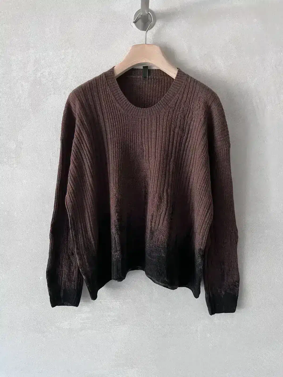 Two-tone merino wool oversize boxy sweater, mixed knit stitch work and black hand-dyed edges, U-neck, dropped shoulder. Size I measurements: length 58 cm, width 62 cm. The next size measurements will increase by 3 cm in length and 6 cm in circumference.