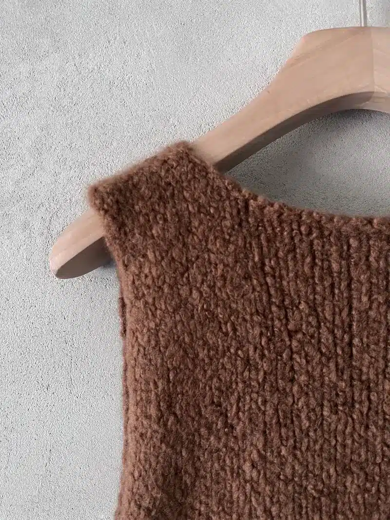 Cashmere and silk vest, deep V-neck, wide sleeve turn. Measurements size 42: length 65 cm, width 45 cm.