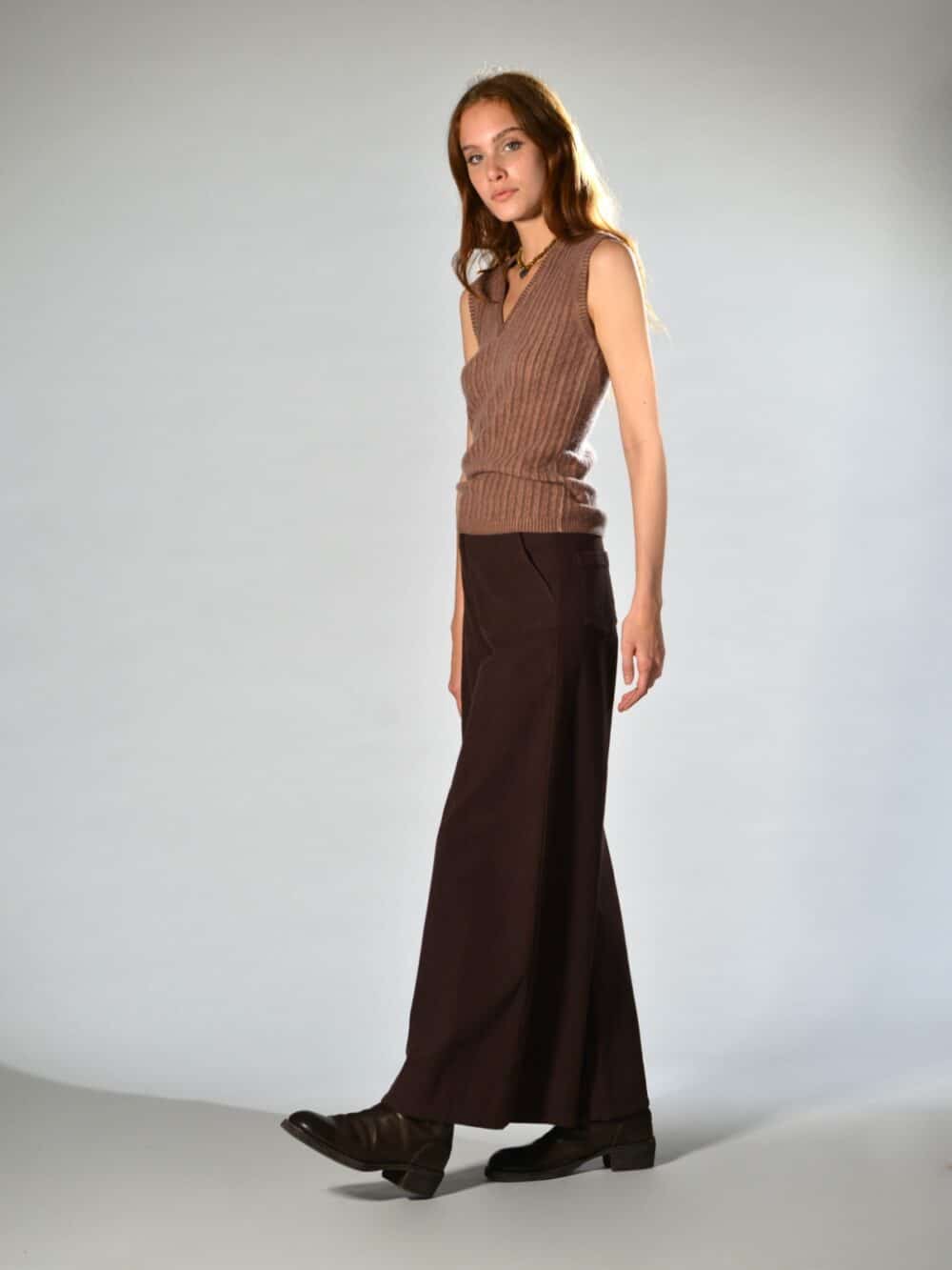 Two-color double-breasted jacket made of herringbone wool fabric, lined shoulders and sleeves, spear collar, closed with 6 buttons + 1 inside mother-of-pearl button, 2 side welt pockets with flap, sleeve at wrist with slit, high slit at center back. Size 38 measurements: length 65 cm, chest circumference 90 cm. The measurements of subsequent sizes will increase by 1 cm in length and 4 cm in circumference.