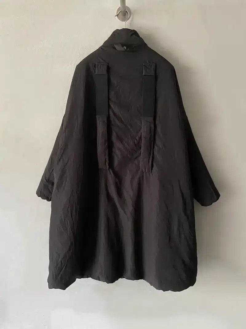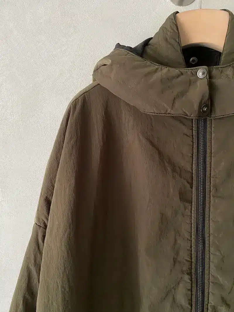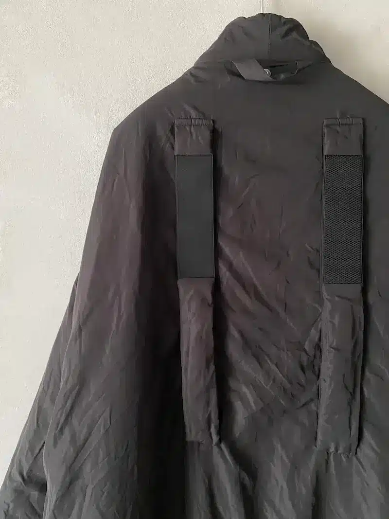 Giacca bomber oversize Kimonorain nera, con cappuccio rimovibile, trapuntatura interna, tasche multiple e chiusura con zip – outerwear tecnico contemporaneo
