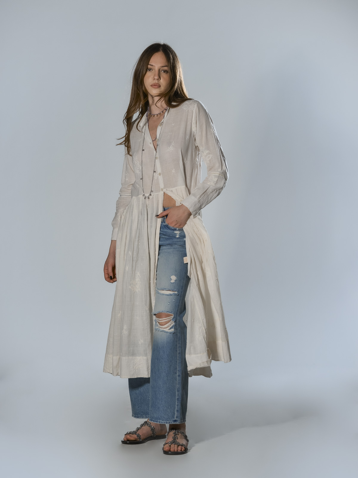 Duster coat with embroidery