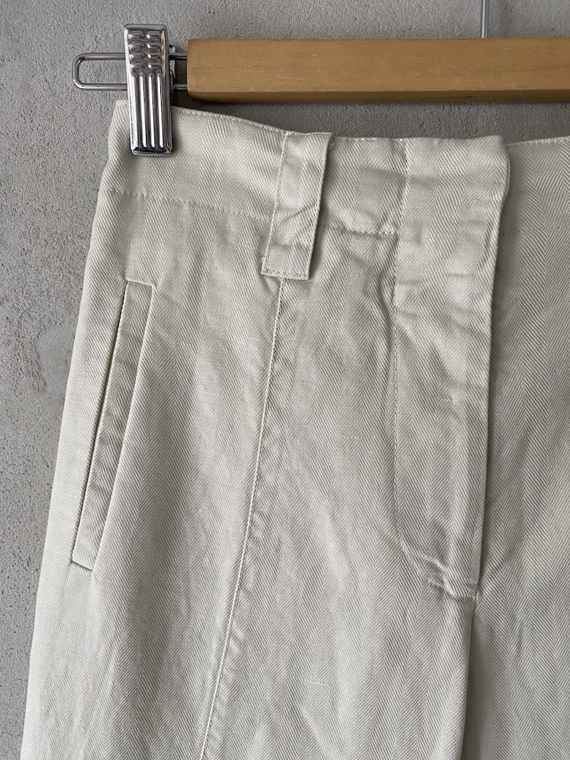 Cream-colored cotton shirt with a classic collar and front closure with covered buttons. Slightly flared, loose-fitting, and short length. Long sleeves with buttoned cuffs. The hem is embellished with tone-on-tone embroidery featuring floral and geometric motifs embellished with small beaded appliqués. The hem is finished with a scalloped edge for a delicate effect. Boxy fit. Made in Japan