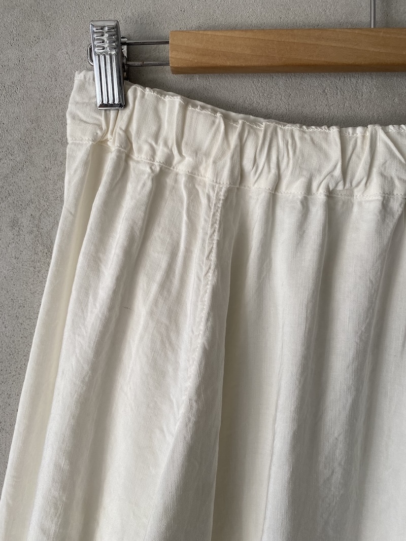 Long skirt in linen and silk. Waist with smooth front band and elastic insert at the back. Two pockets are inserted in the side seam.
