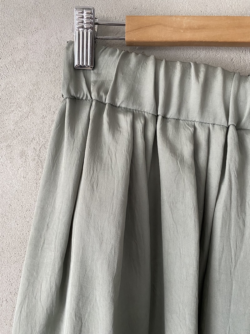 Wide skirt in fabric with a slightly creased finish. Crafted with small flat pleats, it features a 5 cm elastic waistband. A loose, flowing silhouette. Regular fit.