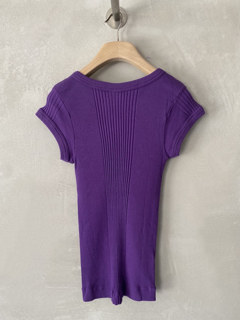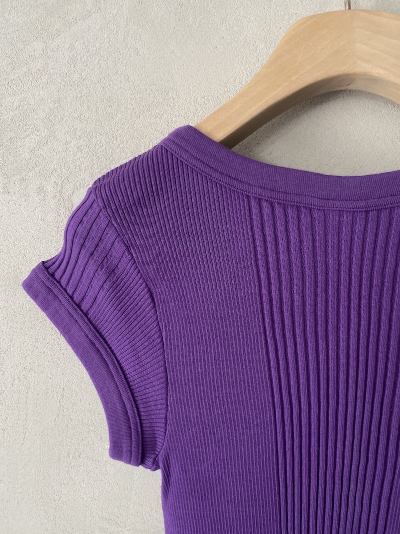 Canotta corta viola in jersey di cotone a costine con scollo rotondo e spalline larghe, linea aderente Pure Sugar