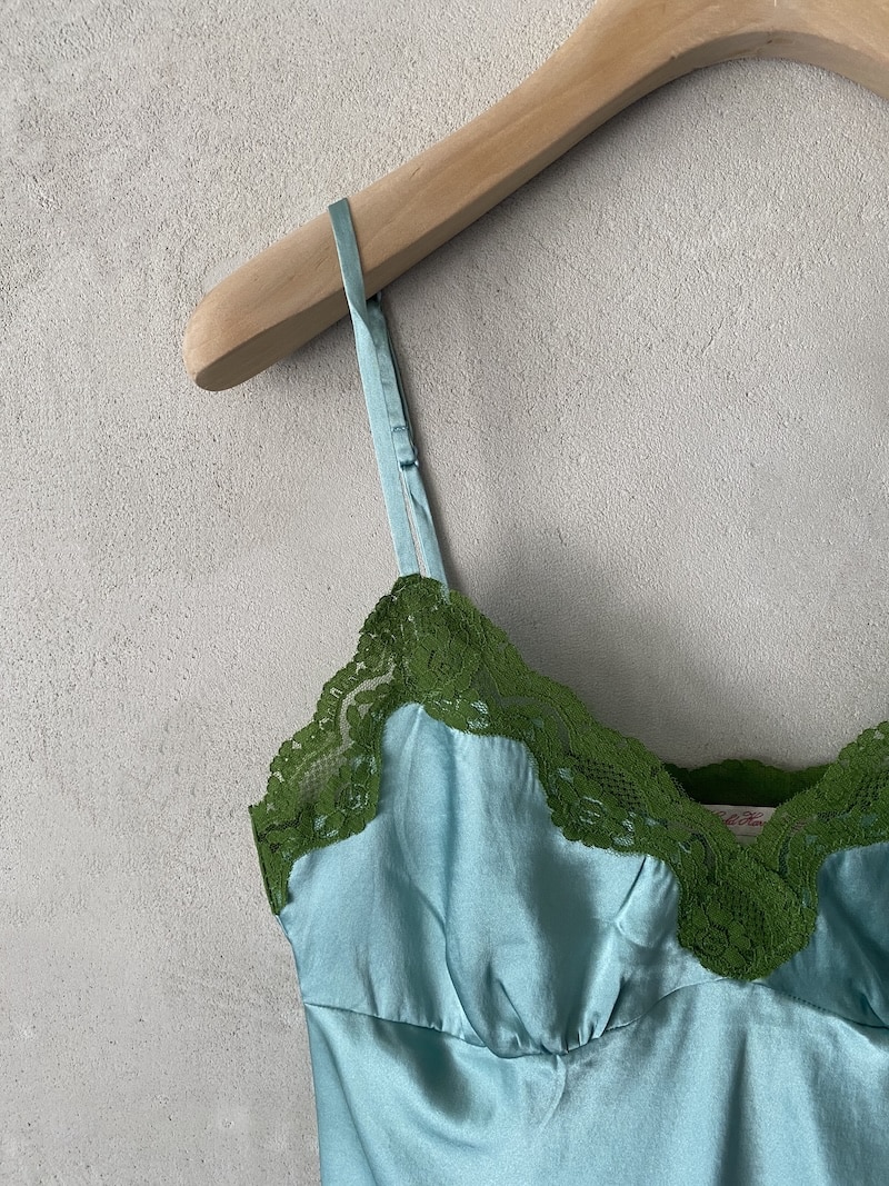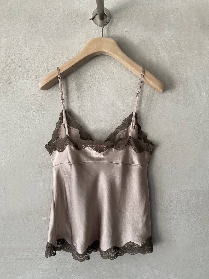 Silk satin crop top with lace inserts. Adjustable thin straps, V-neckline trimmed with contrasting lace. Lace trim at the hem. Soft and slightly flared line. Regular fit.