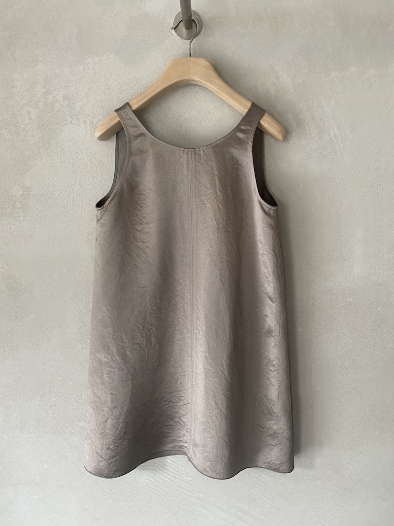 Sleeveless minidress in acetate fabric with a slightly creased finish. Bias cut with a deep V-neck. Soft and slightly flared line. Regular fit.