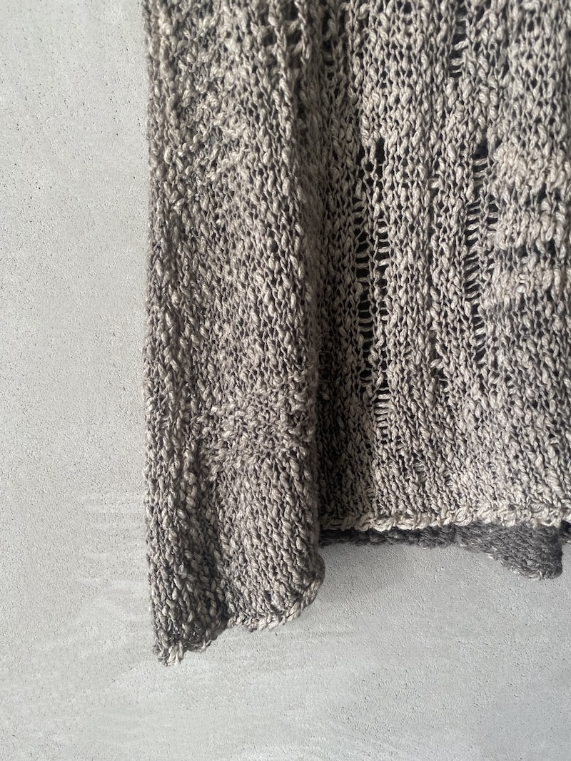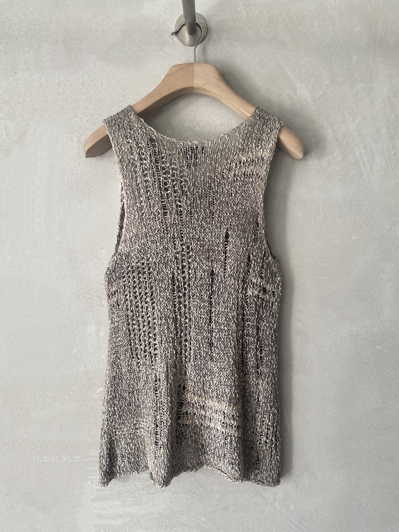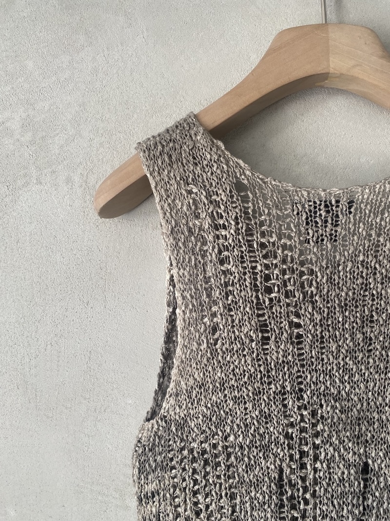Sleeveless cotton sweater featuring weave irregularities, hand-painted. V-neck. Regular fit. It adapts to the shape of the body, stretching and contracting.
