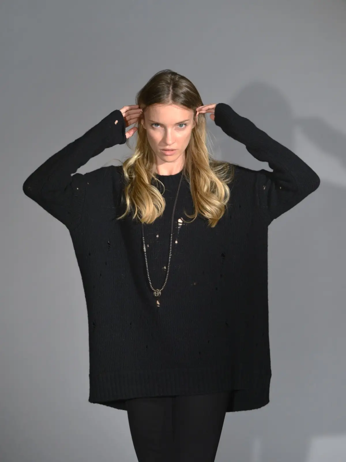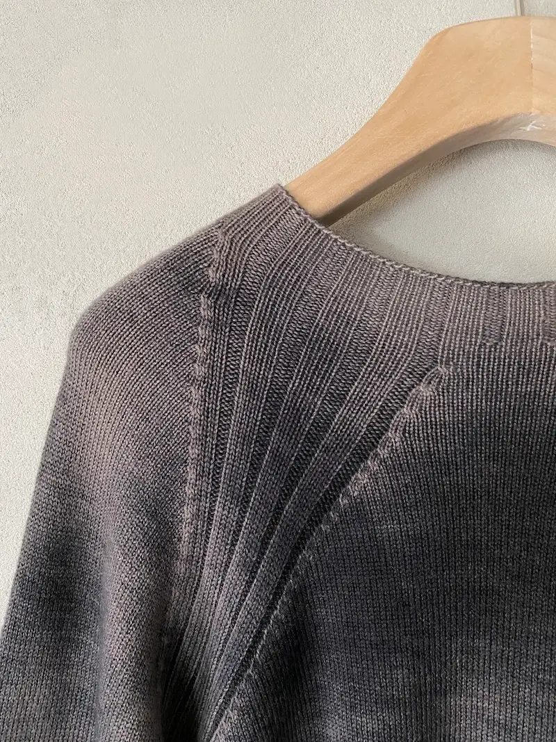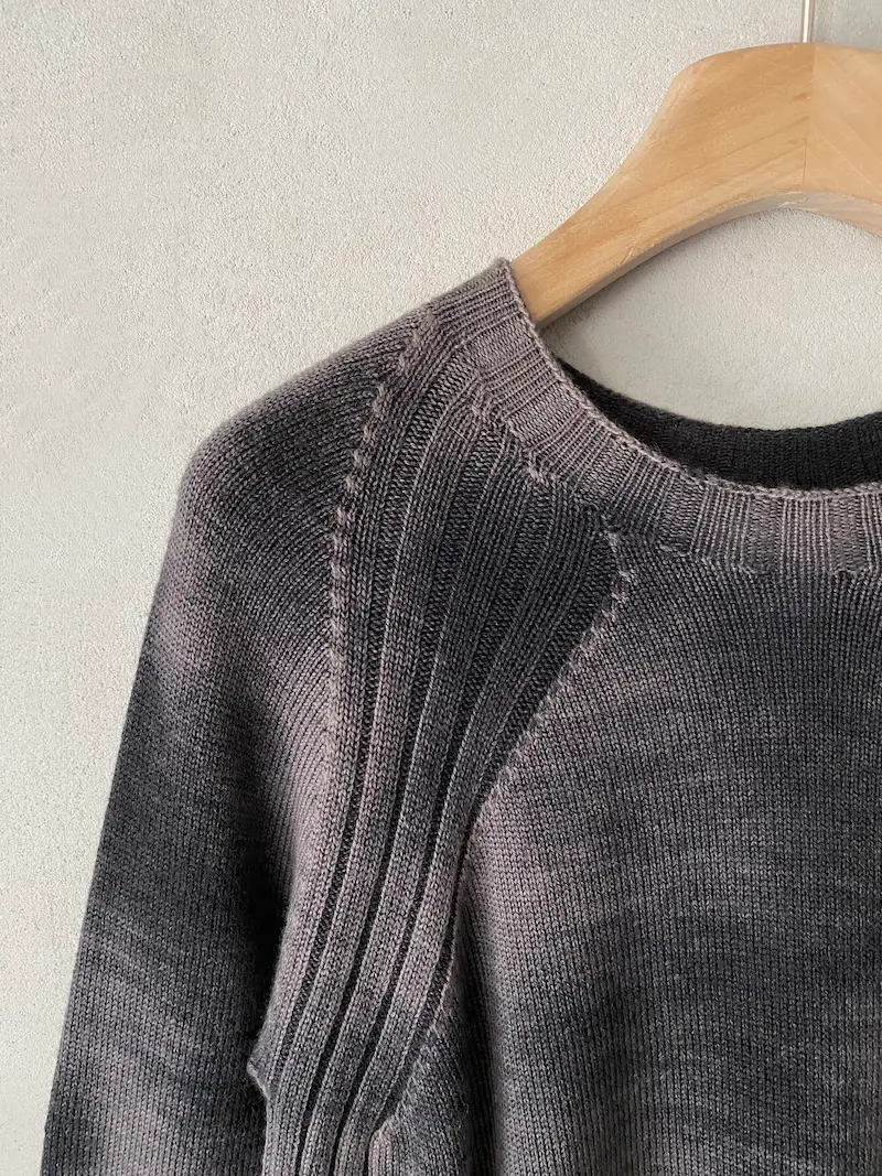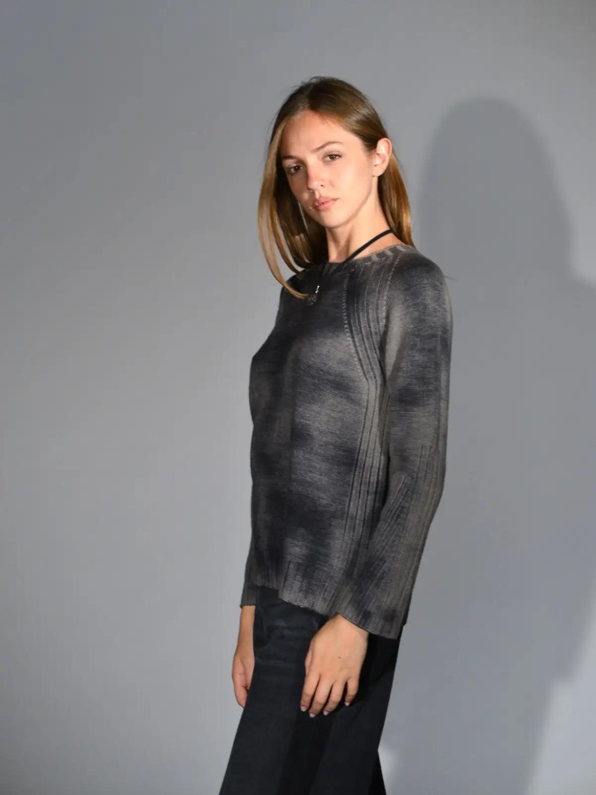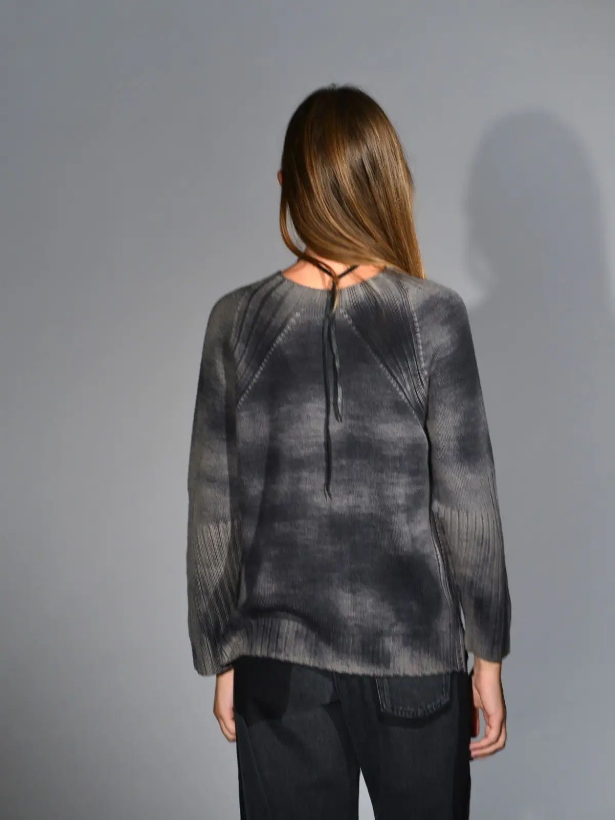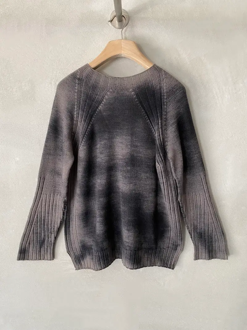 Hand-painted extra-fine merino wool sweater, round neckline, long raglan sleeve, regular fit. Size S measurements: length 62 cm, width 48 cm. Later size measurements will increase by 2 cm in length and 4 cm in circumference.