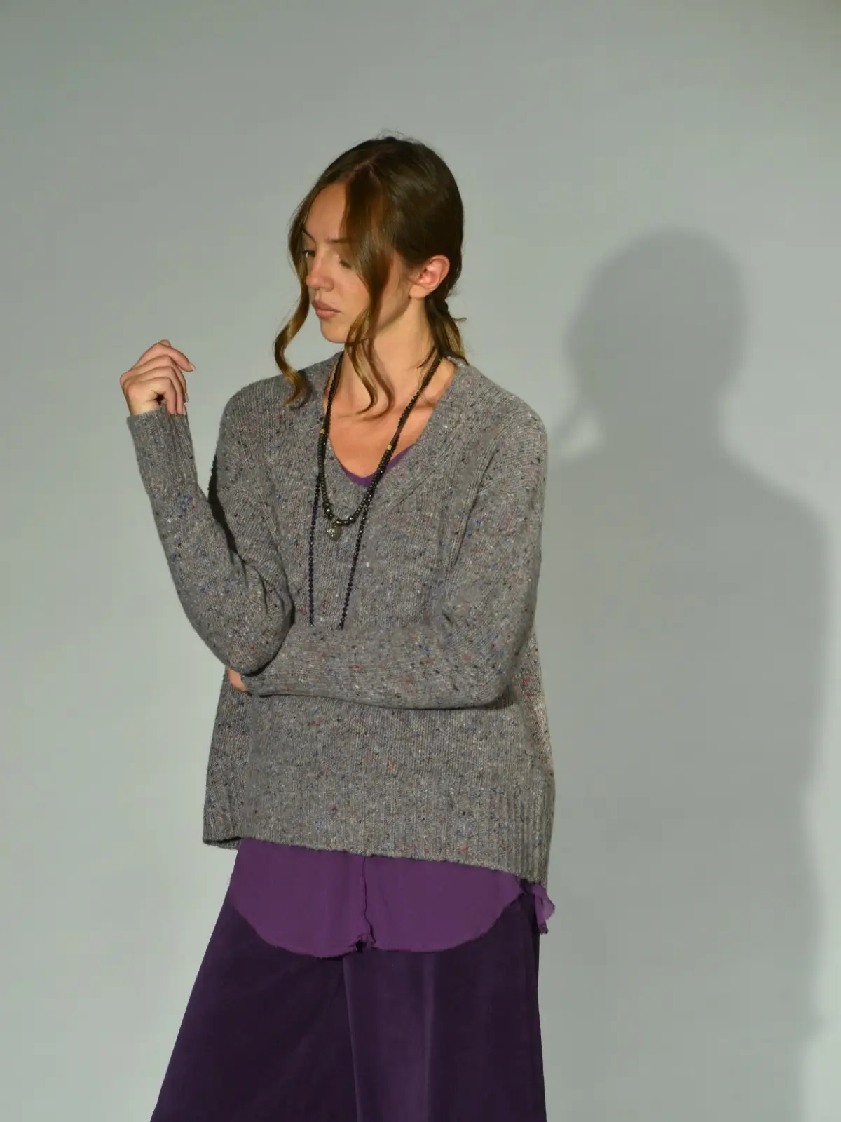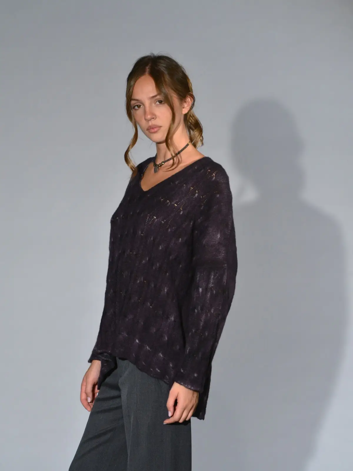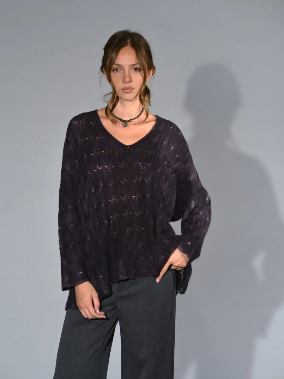 maglia lana dipinta a mano nero beige trecce ploumanac’h