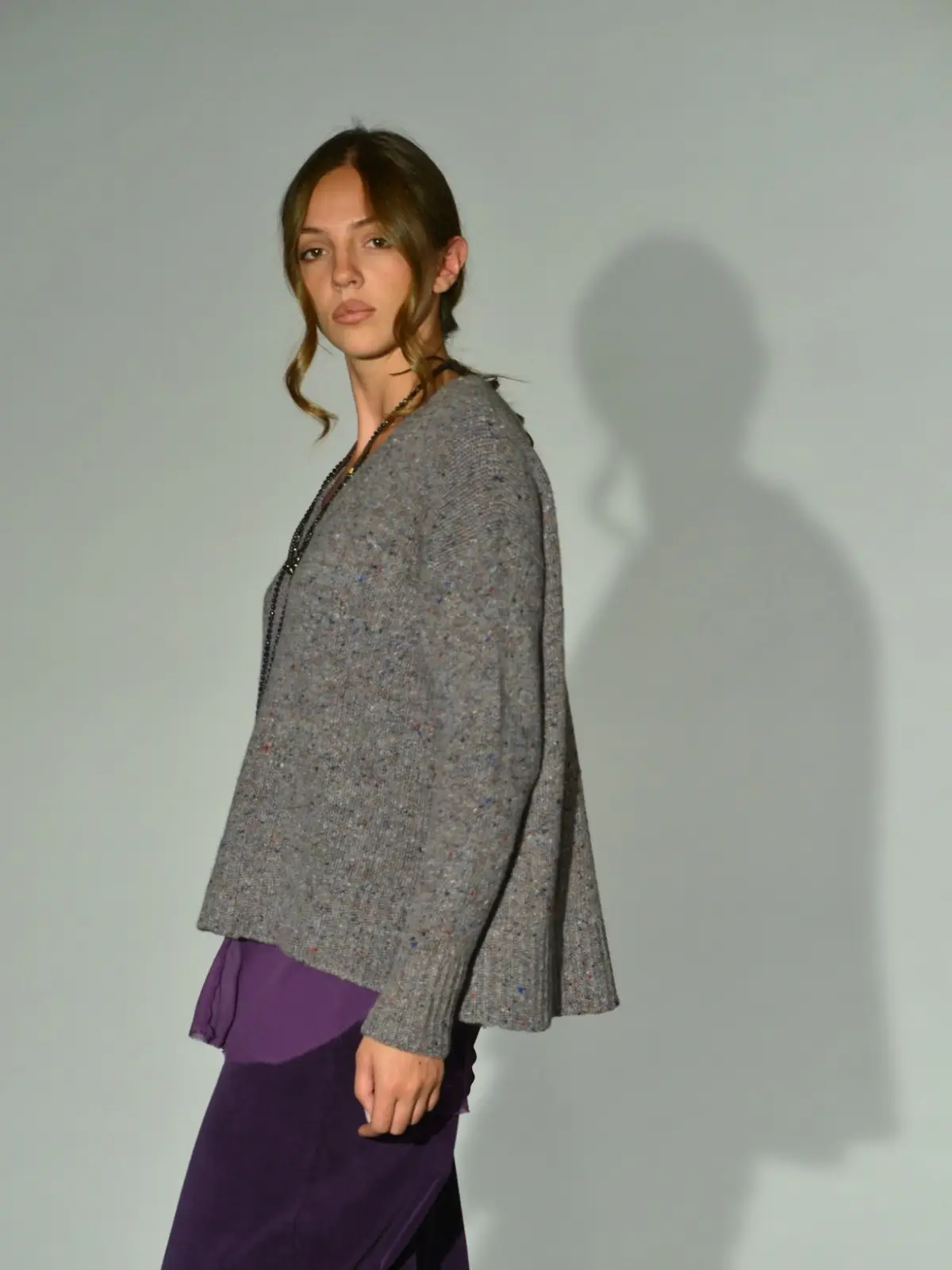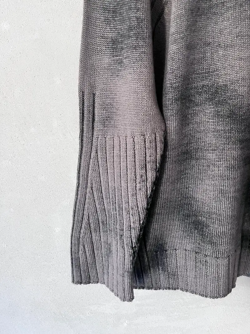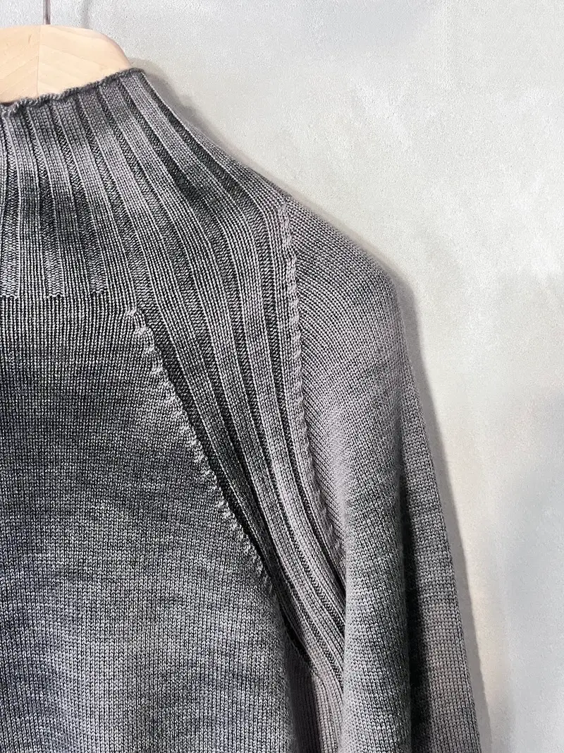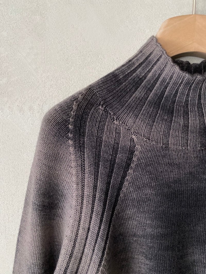 Hand-painted extra-fine merino wool sweater, mock neck, long raglan sleeve, regular fit. Size S measurements: length 64 cm, width 49 cm. Later size measurements will increase by 2 cm in length and 4 cm in circumference.