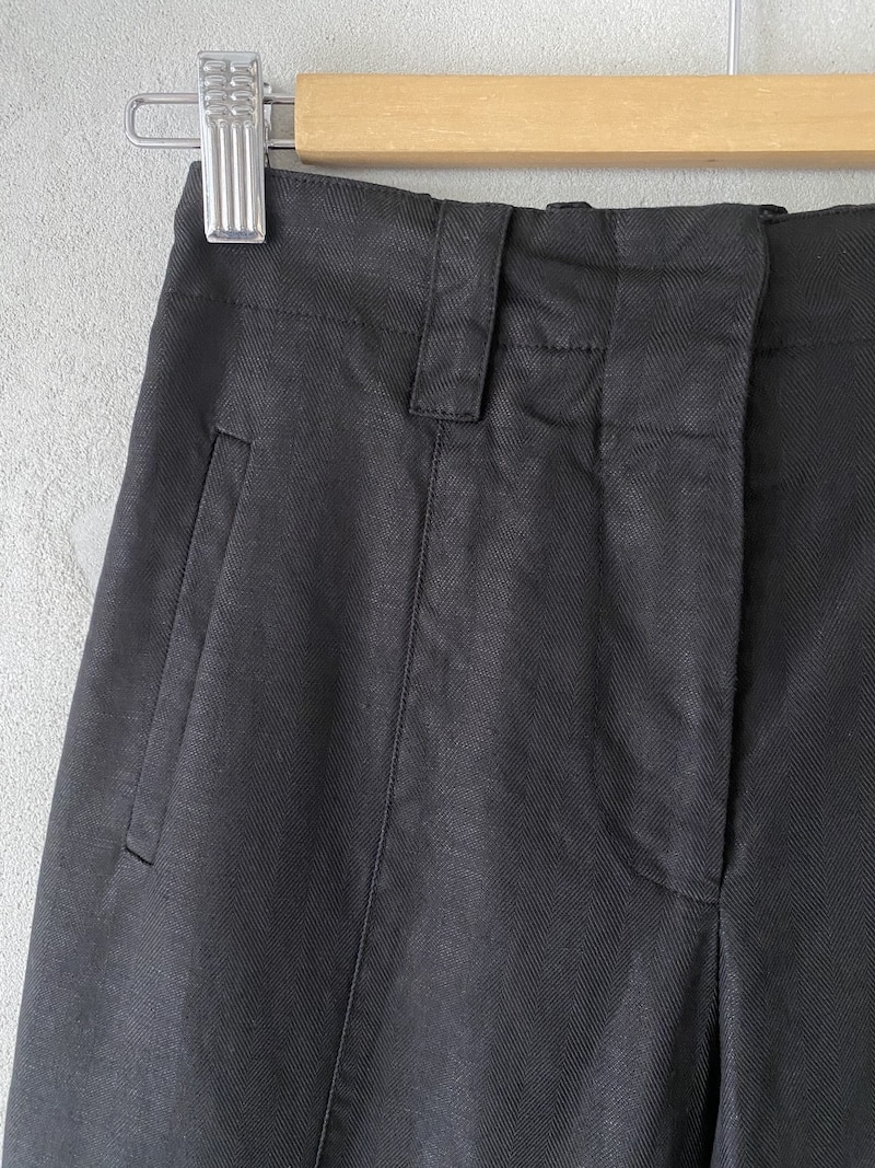 Pantaloni alla caviglia in cotone e lino spigato leggermente elasticizzato con chiusura frontale con zip e gancio, colore nero – Barbara Tani