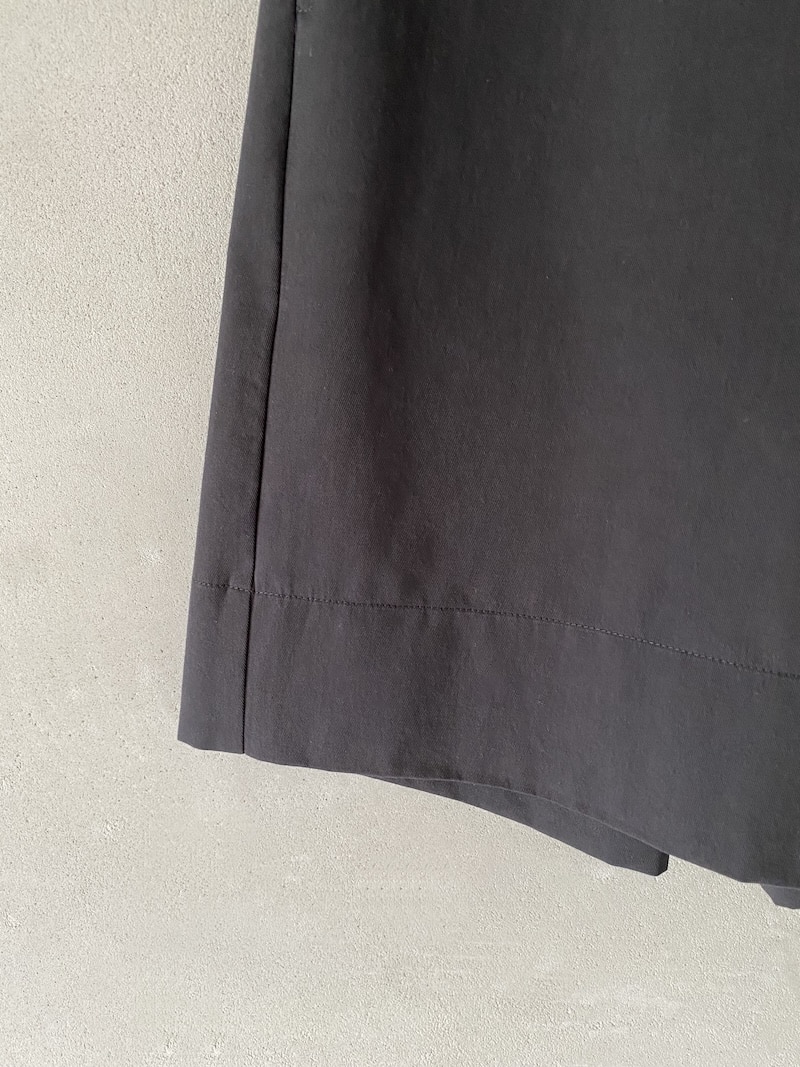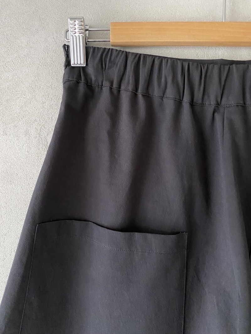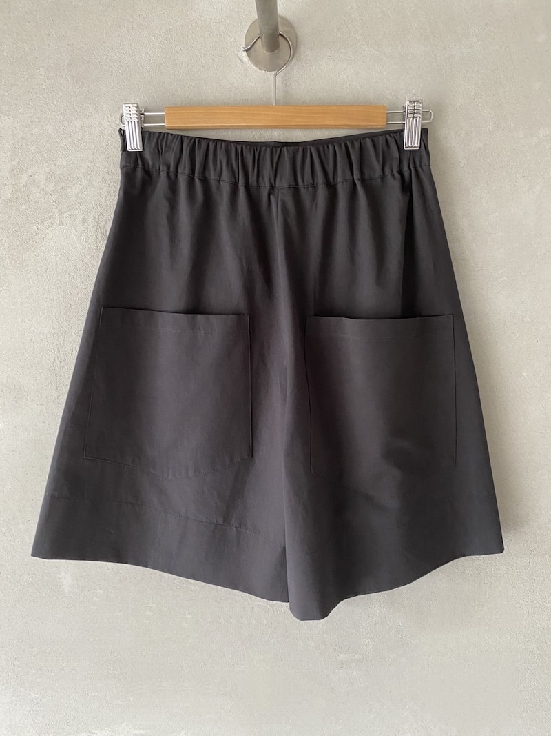 Bermuda in cotone e lino. Vita liscia sul davanti con elastico sul retro. Linea ampia con volume morbido e gamba leggermente svasata. Due tasche laterali inserite in cucitura e due tasche applicate sul dietro. Fondo dritto con orlo impunturato. Vestibilità regolare.