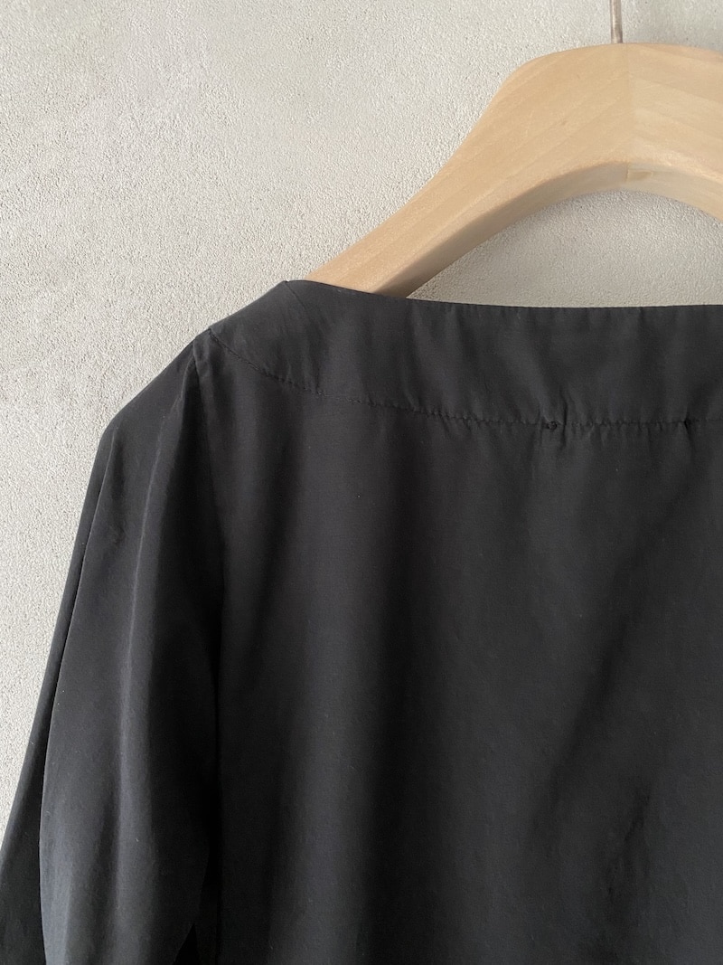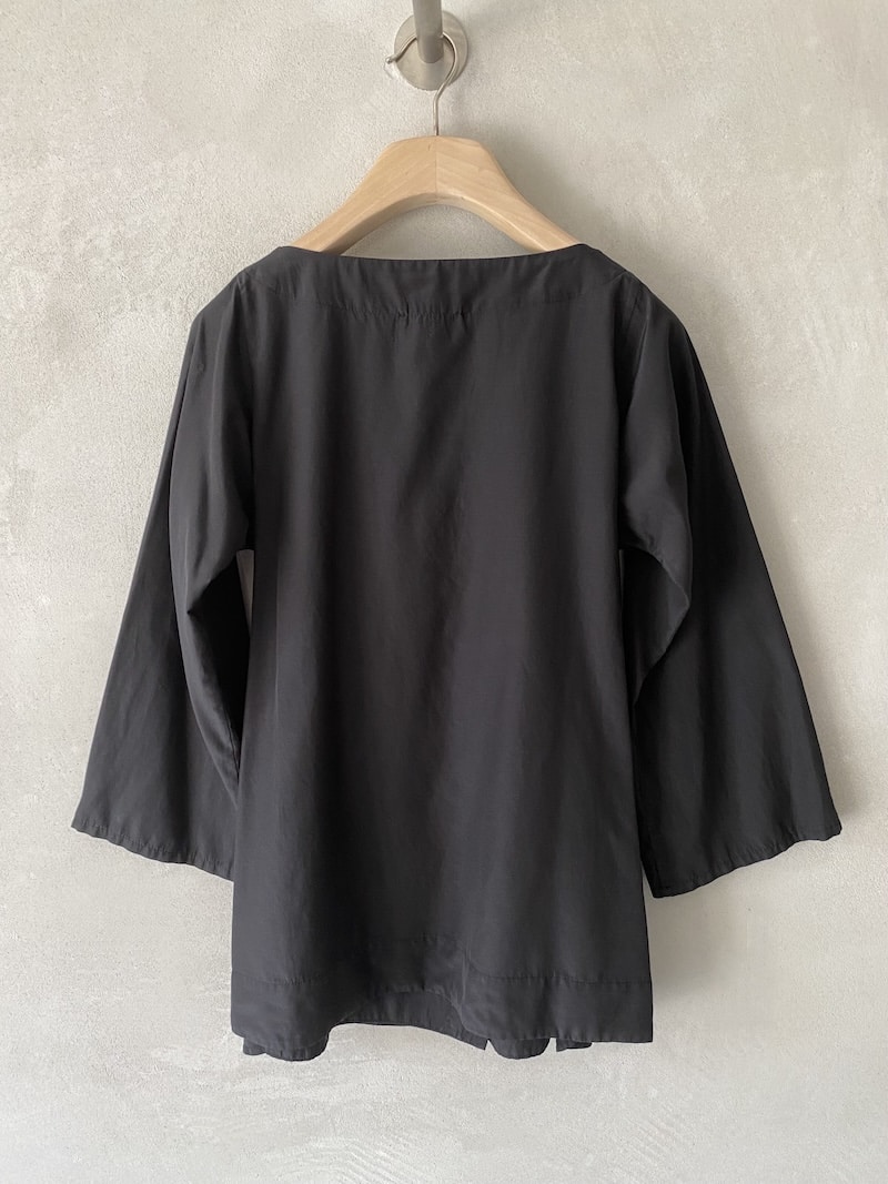 Camicia incrociata in lyocell. Scollo a V con chiusura a portafoglio. Chiusura laterale con laccetti. Maniche a 3/4 con linea dritta. Due tasche laterali inserite in cucitura. Fondo con orlo alto. Vestibilità fluida.