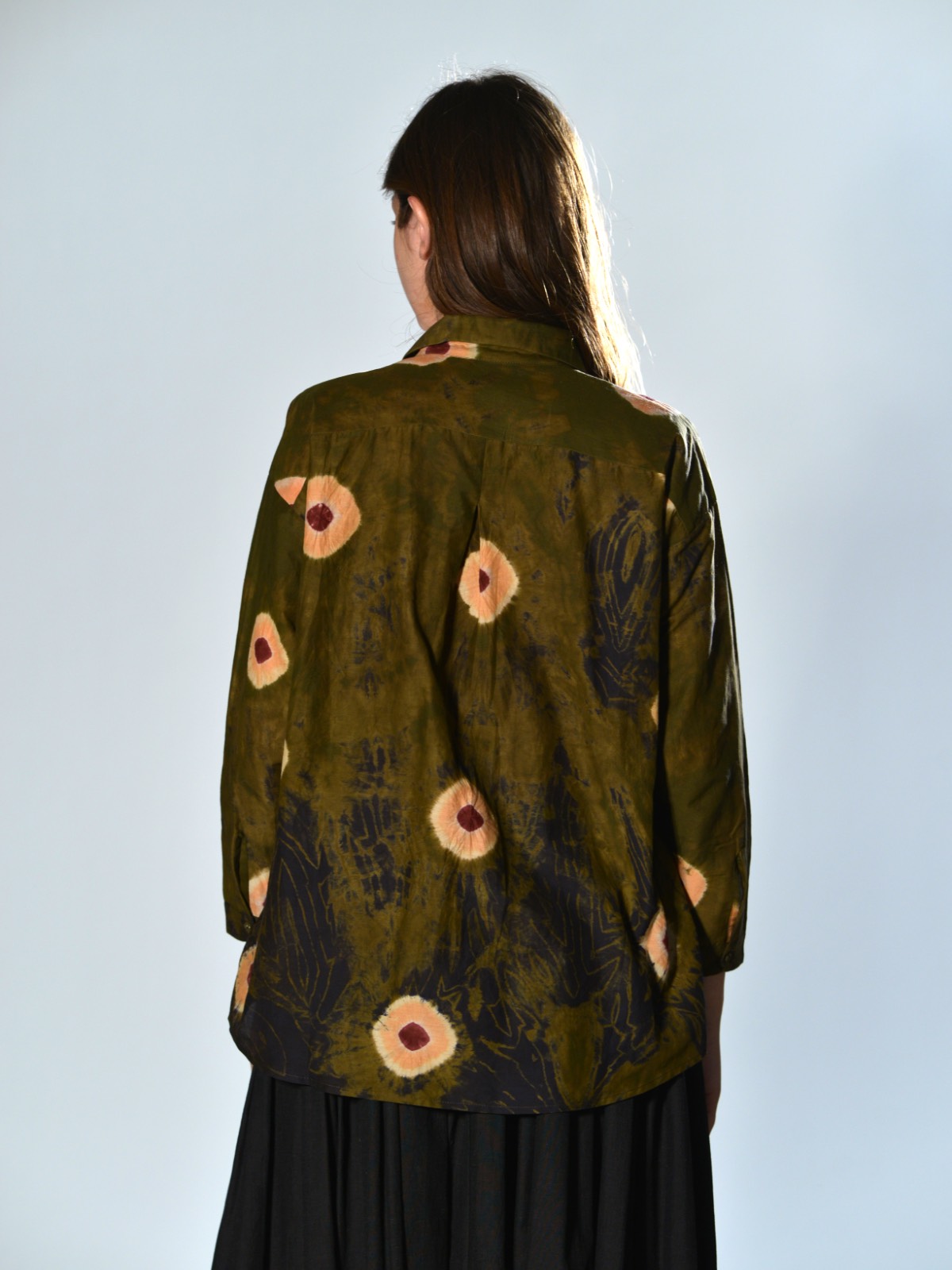 Nota artigianale: realizzati in India con tessuti stampati manualmente secondo l’antica tecnica shibori, questi capi presentano naturali variazioni di colore e intensità. Tali caratteristiche sono parte integrante del processo artigianale e testimoniano l’unicità di ogni pezzo.