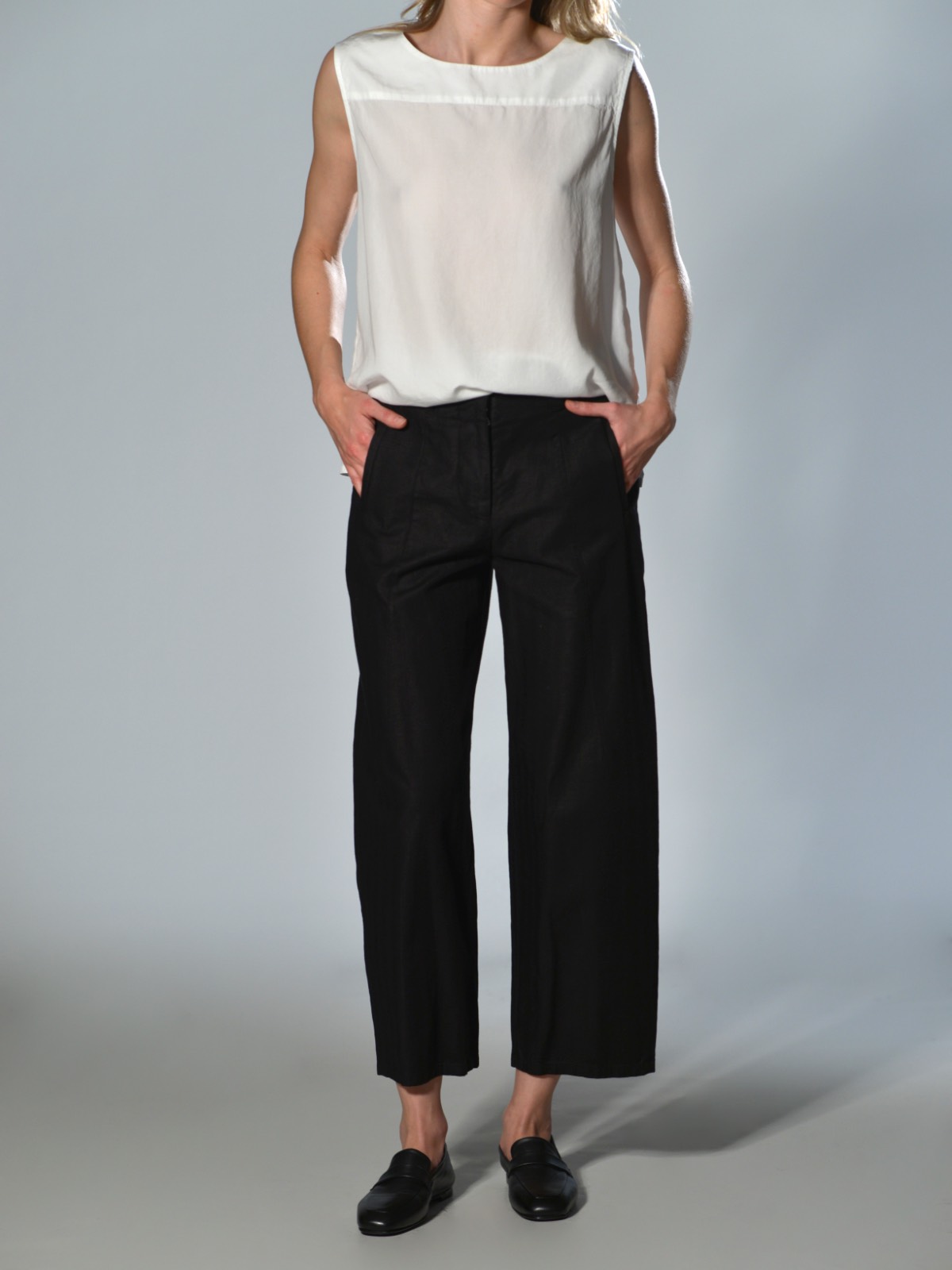 Camicia in cotone e seta. Colletto a uomo, chiusa con 7 bottoni foderati, manica lunga con polsino basso chiuso con 1 bottone. Vestibilità oversize.