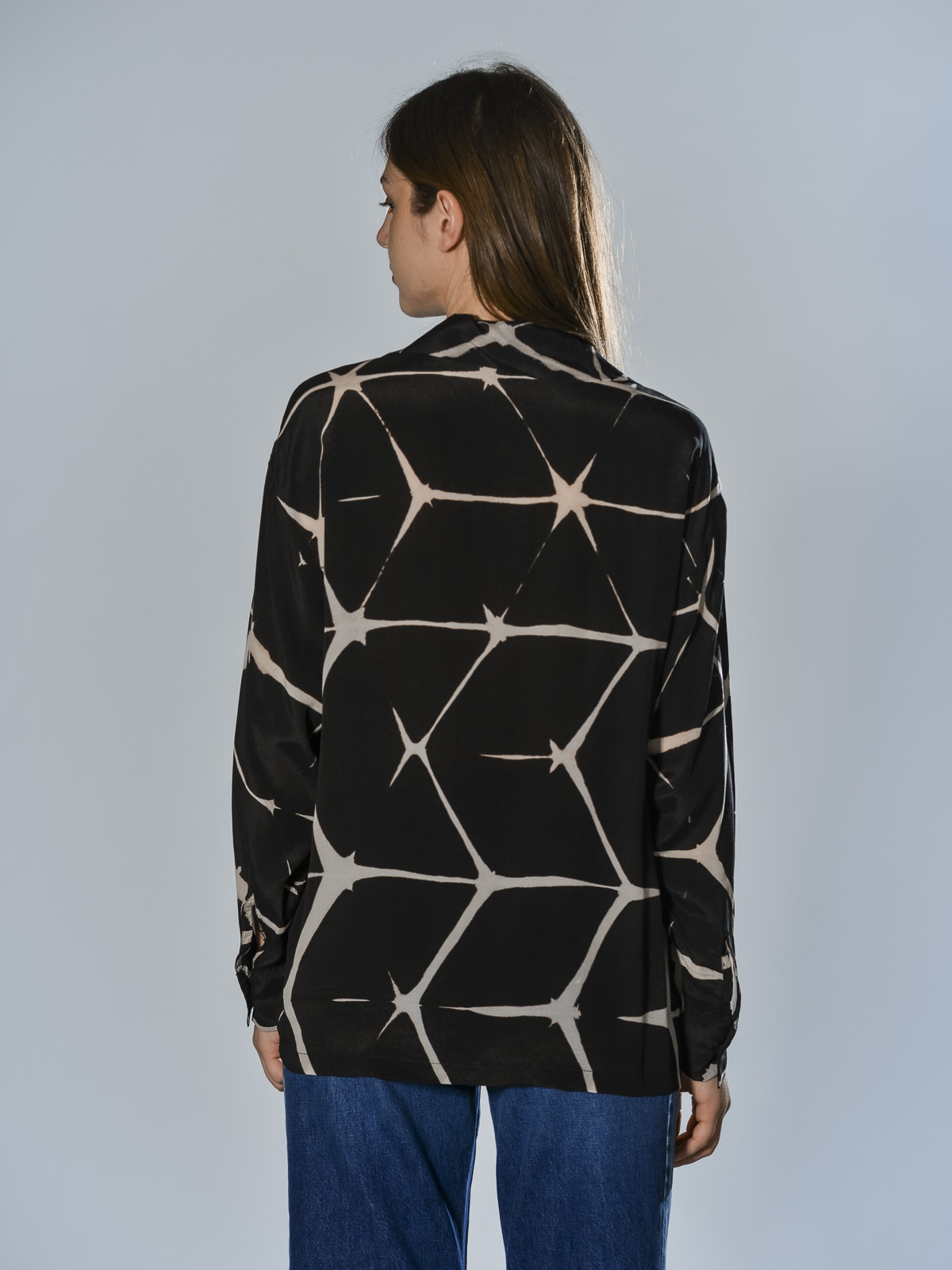 Camicia in viscosa. Chiusa con 5 bottoni foderati, manica lunga con polsino chiuso con 1 bottone. Vestibilità oversize.