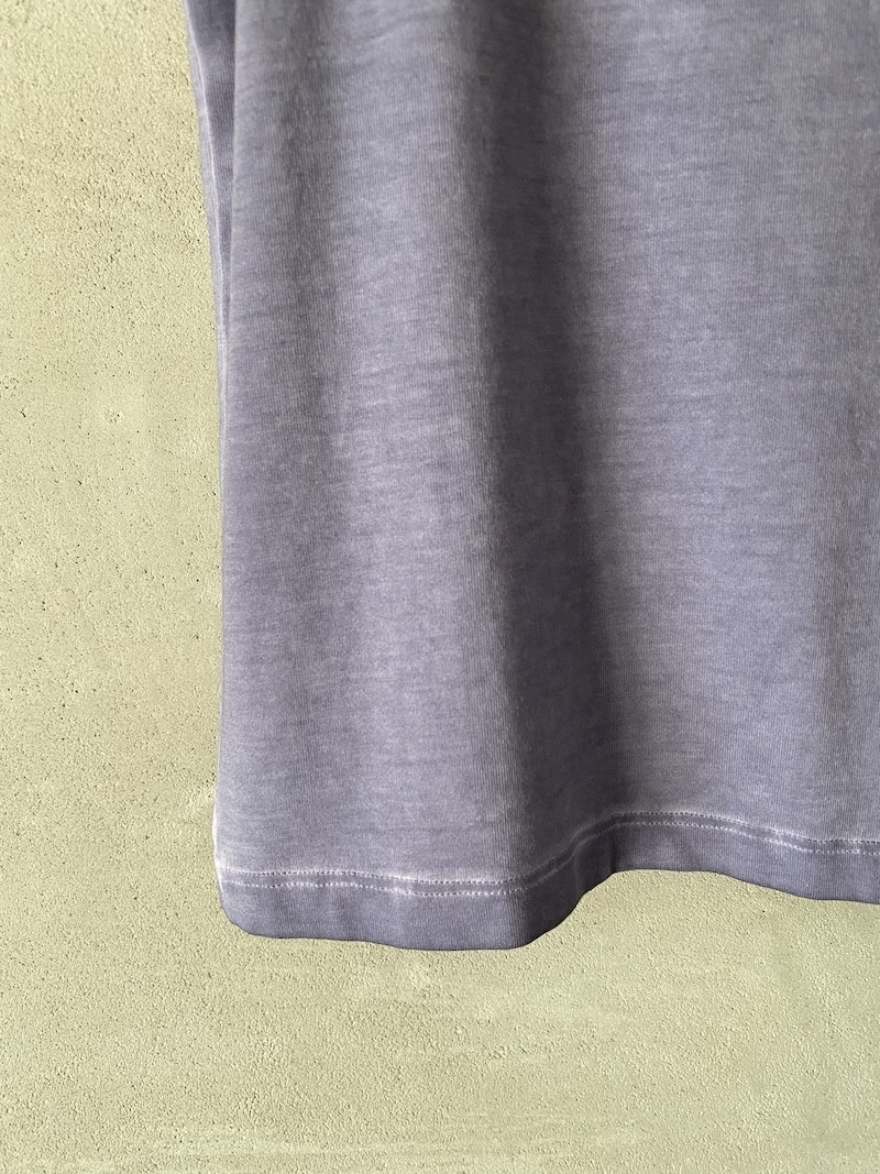 Canotta in jersey di viscosa delavé con scollo rotondo ampio e spalline larghe. Tinto in capo. Scollo e giromanica rifiniti con bordo pulito, orlo dritto.