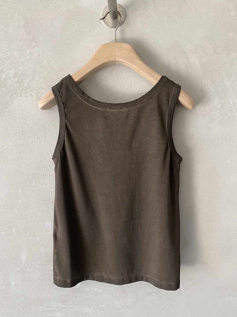 Canotta in jersey di viscosa delavé con scollo rotondo ampio e spalline larghe. Tinto in capo. Scollo e giromanica rifiniti con bordo pulito, orlo dritto.