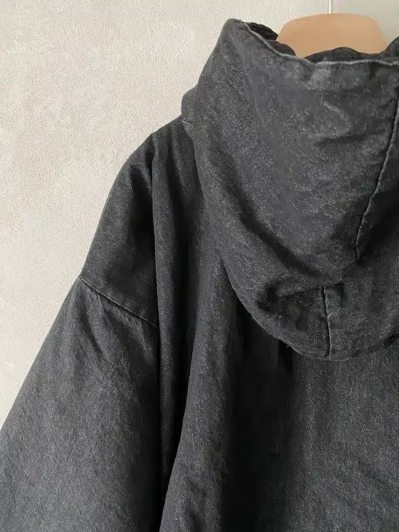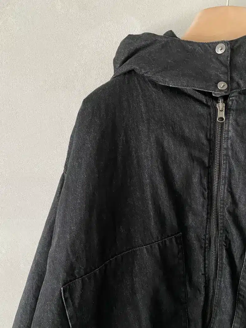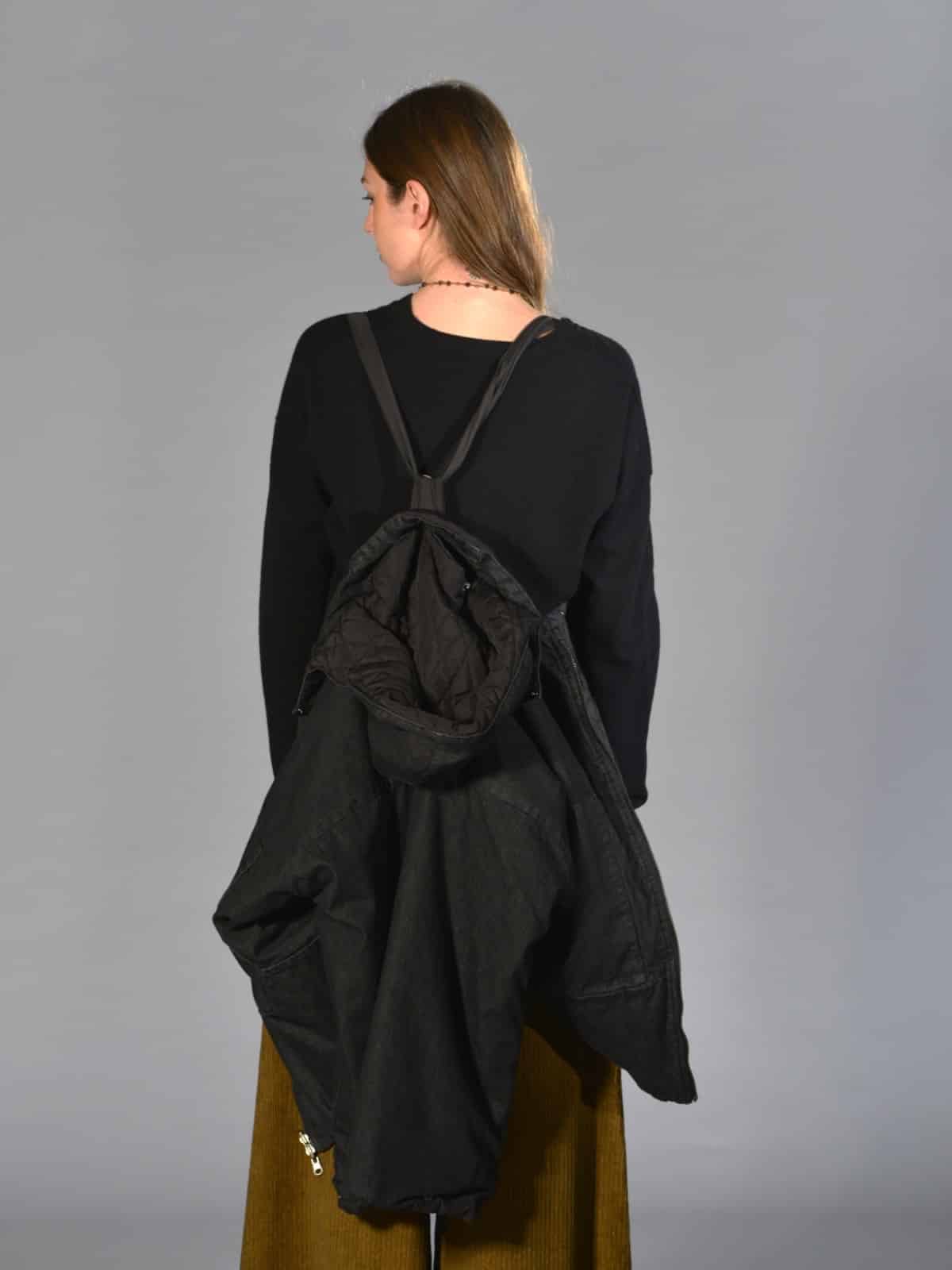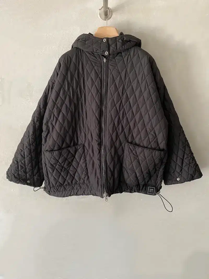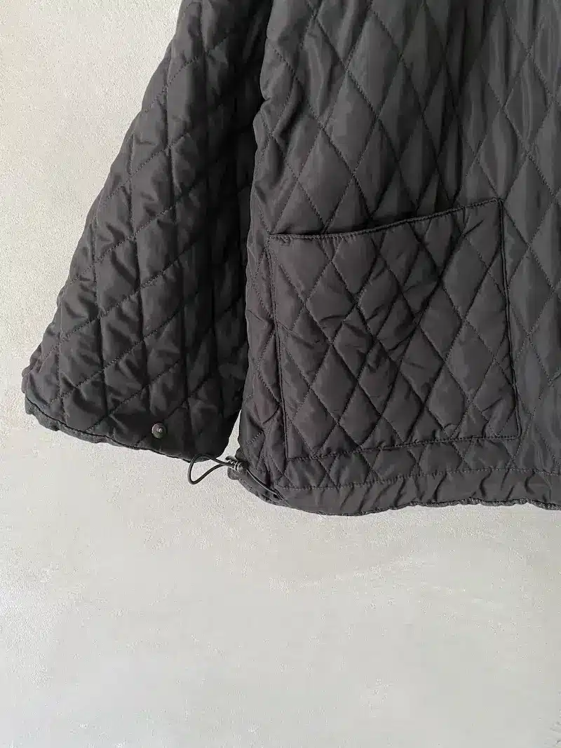 Giacca bomber con cappuccio rimovibile, vestibilità oversize, 2 ampie tasche oblique laterali più 2 tasche a marsupio, chiusura centrale davanti con lampo a vista, imbottitura con trapunta, polso chiuso con automatico. Misure taglia S: lunghezze 70 cm, larghezza 70 cm. Le misure delle taglie successive aumenteranno 4 cm in circonferenza e 2 cm in lunghezza.