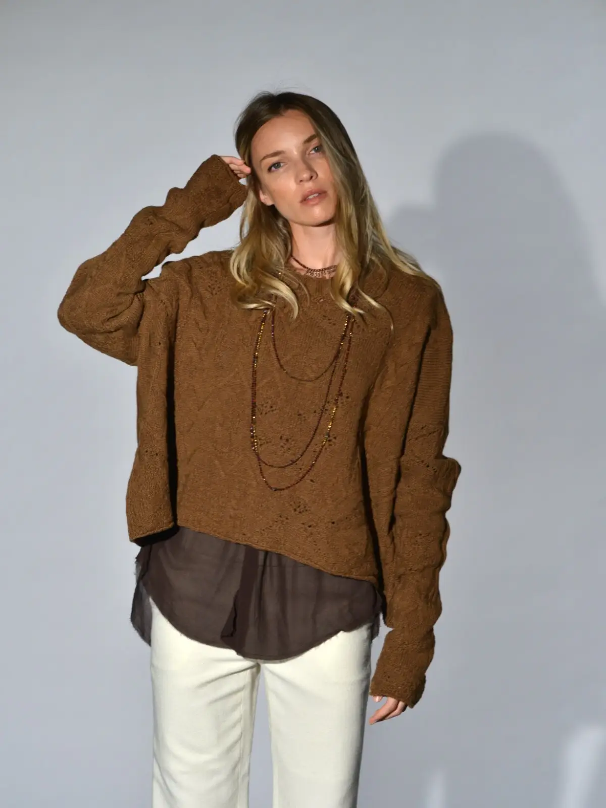 maglia over cashmere cammello dipinto a mano ploumanac’h