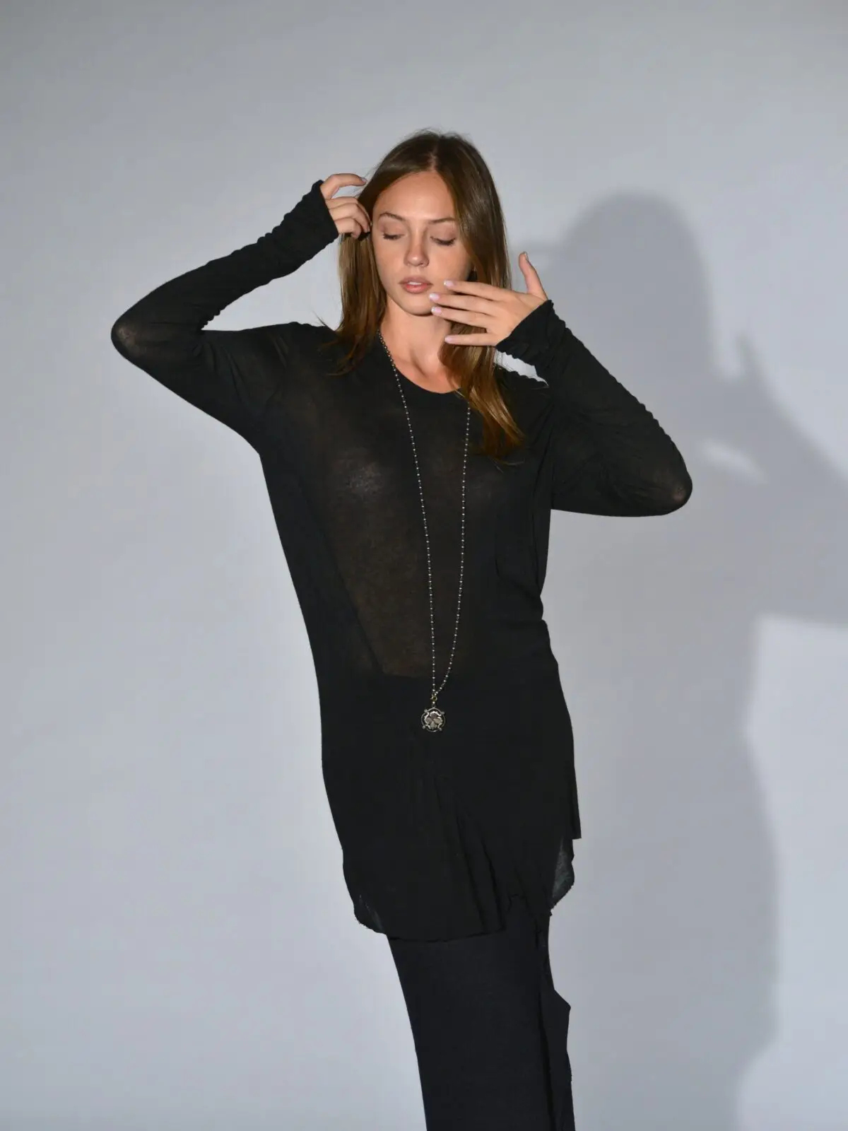 Maglia in lana merinos extrafine dipinta a mano, collo a lupetto, manica lunga raglan, vestibilità regolare. Misure taglia S: lunghezza 64 cm, larghezza 49 cm. Le misure delle taglie successive aumenteranno 2 cm in lunghezza e 4 cm in circonferenza.