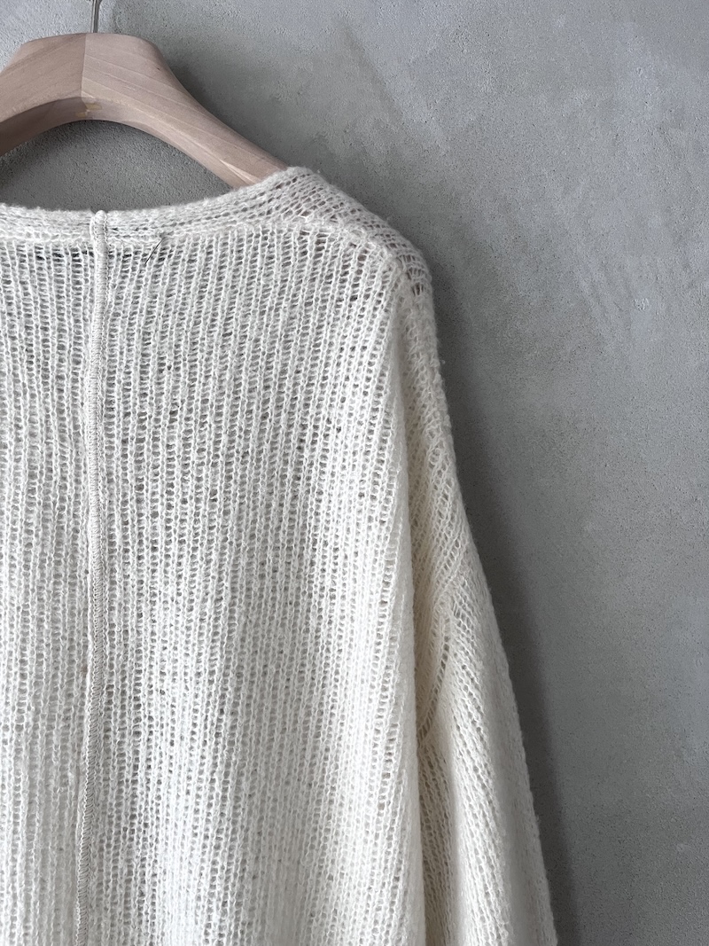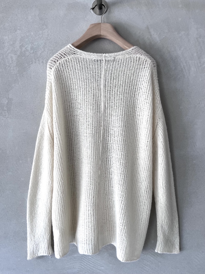 Maglia over in cashmere e seta con scollo a V profondo. Misure taglia I: lunghezza 70 cm, larghezza 64 cm. Le misure delle taglie successive aumenteranno 2 cm in lunghezza e 4 cm in circonferenza.