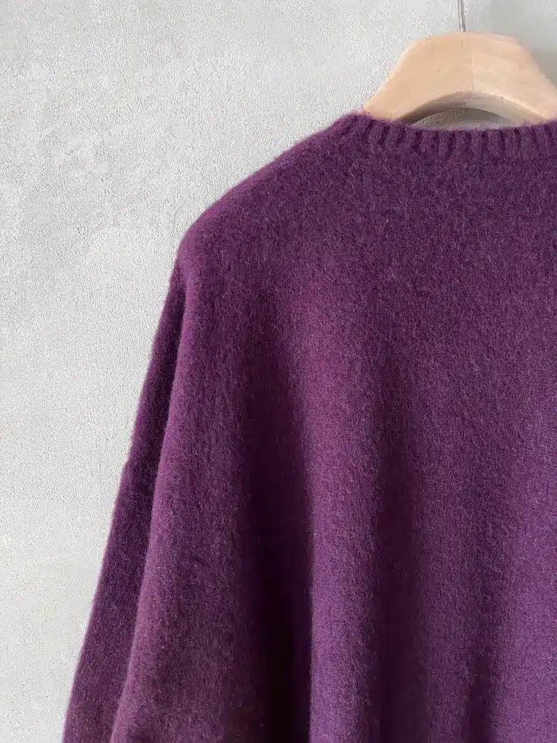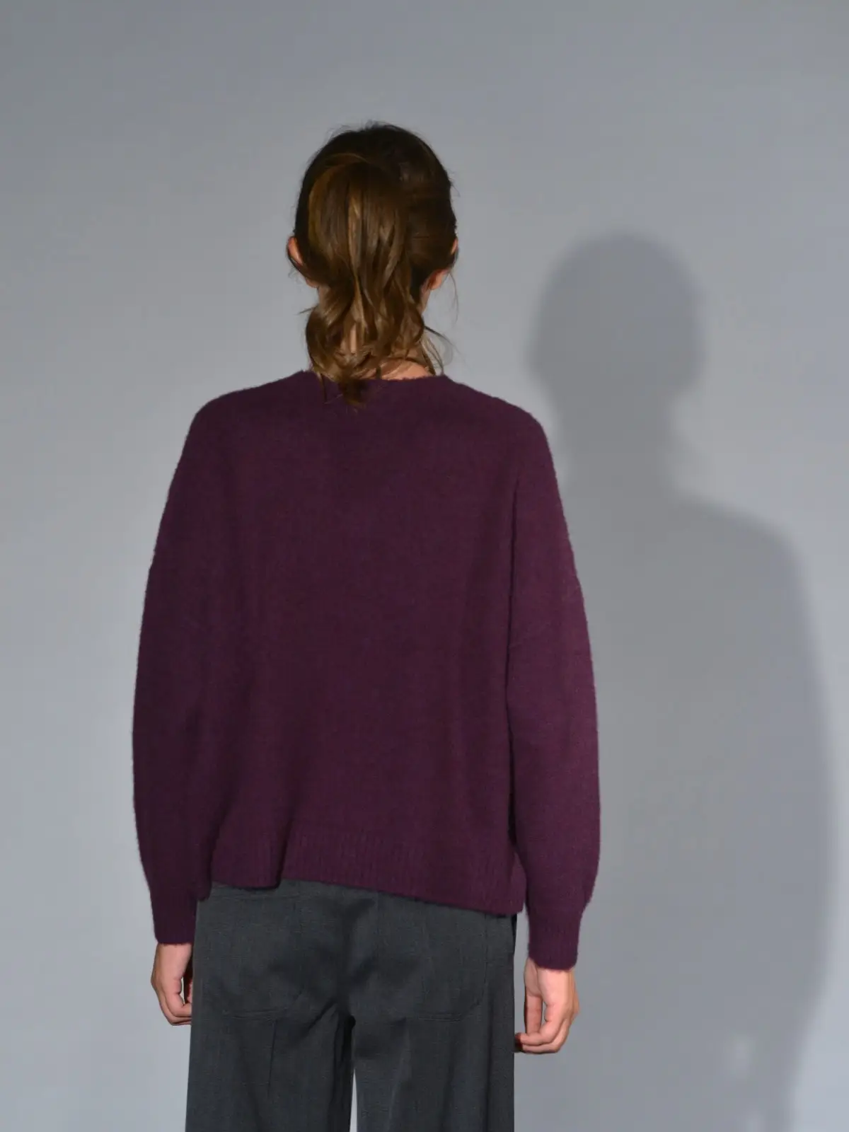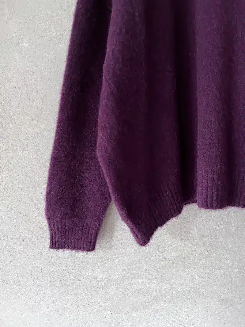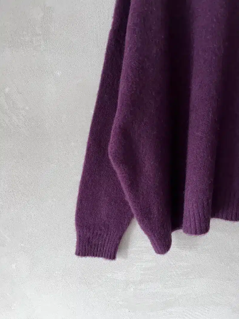 Maglia over boxi realizzato con un filato super morbido e caldo di cashmere, scollo a V, spalla calata. Misure taglia S: lunghezza 55 cm, larghezza 70 cm. Le misure delle taglie successive aumenteranno 2 cm in lunghezza e 4 cm in circonferenza.