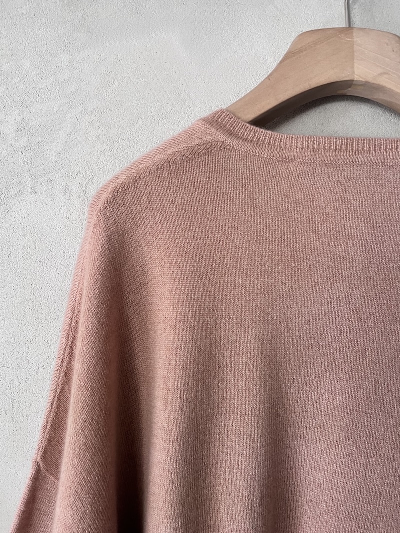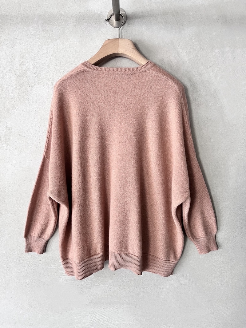 Maglia over boxi in cashmere melange, scollo a V profondo, completamente aperto ai lati, manica 3/4. Misure taglia S: lunghezza 56 cm, larghezza 68 cm. Le misure delle taglie successive aumenteranno 2 cm in lunghezza e 4 cm in circonferenza.