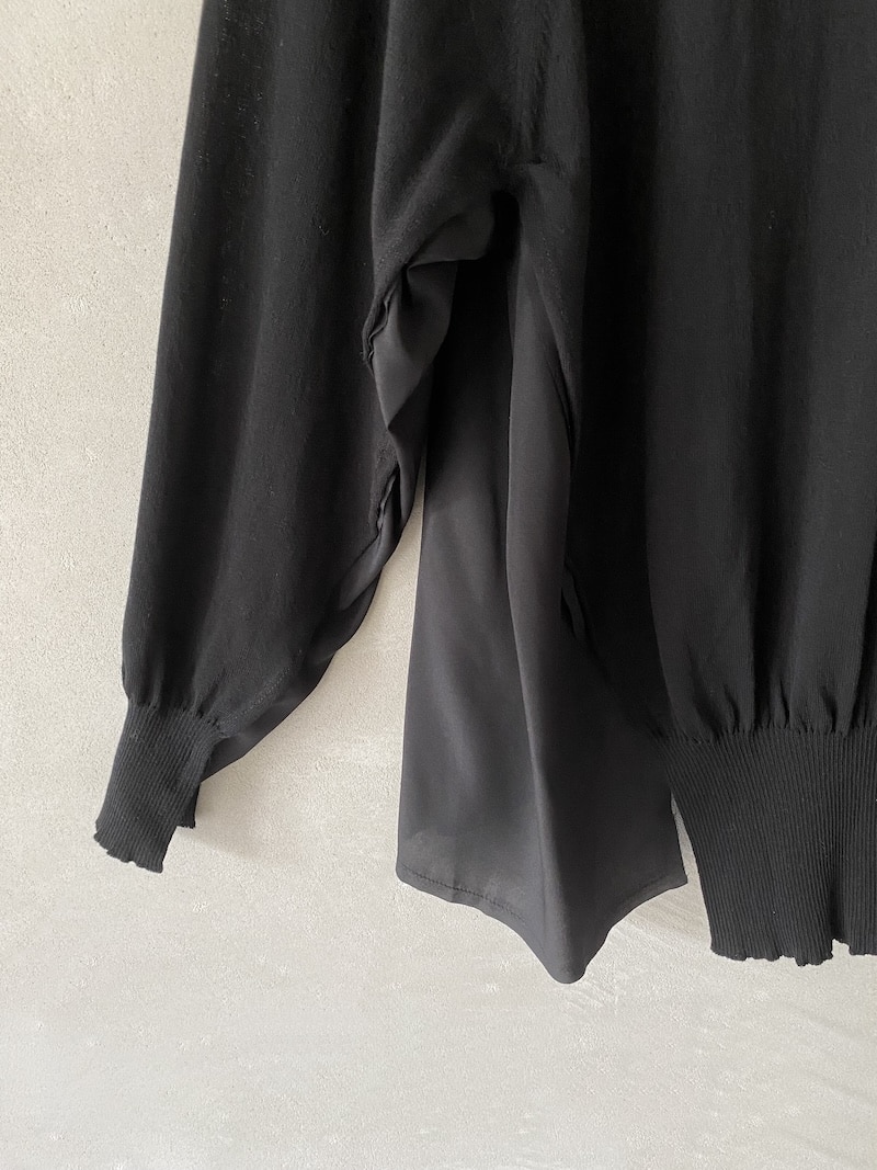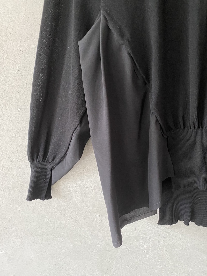 Maglia over in cotone con inserti in seta. Scollo rotondo ampio. Maniche lunghe e ampie con costruzione raglan. Inserti laterali in tessuto di seta. Fondo con spacchi sul davanti e sul dietro.