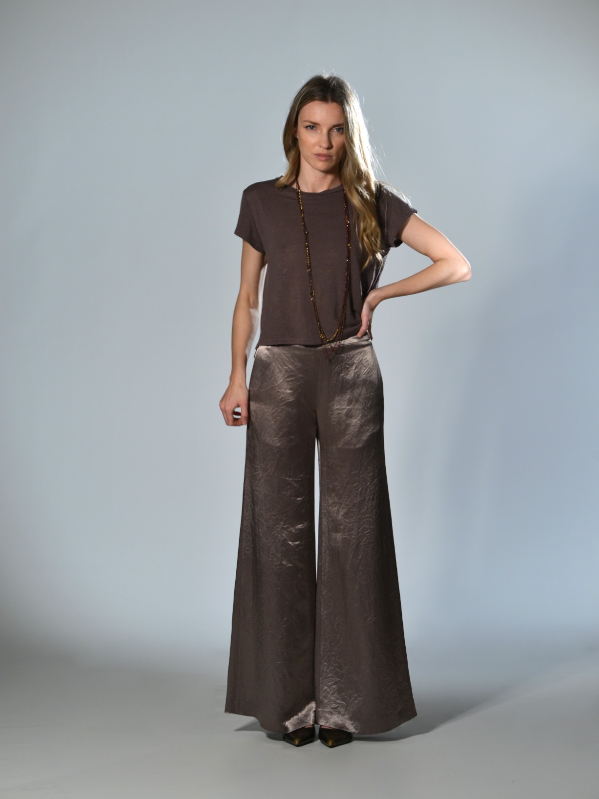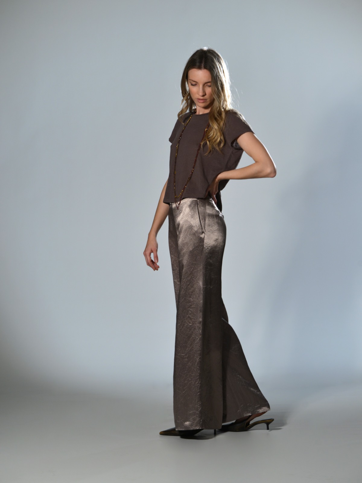 Spolverino over in tessuto broccato di lino e viscosa. Lunghezza 98 cm, larghezza 60 cm (tg.40), chiuso davanti con un bottone, manica al polso con spacco, due tasche a filetto con patta, spacco dietro sovrapposto. Rifiniture a taglio vivo con bordino.