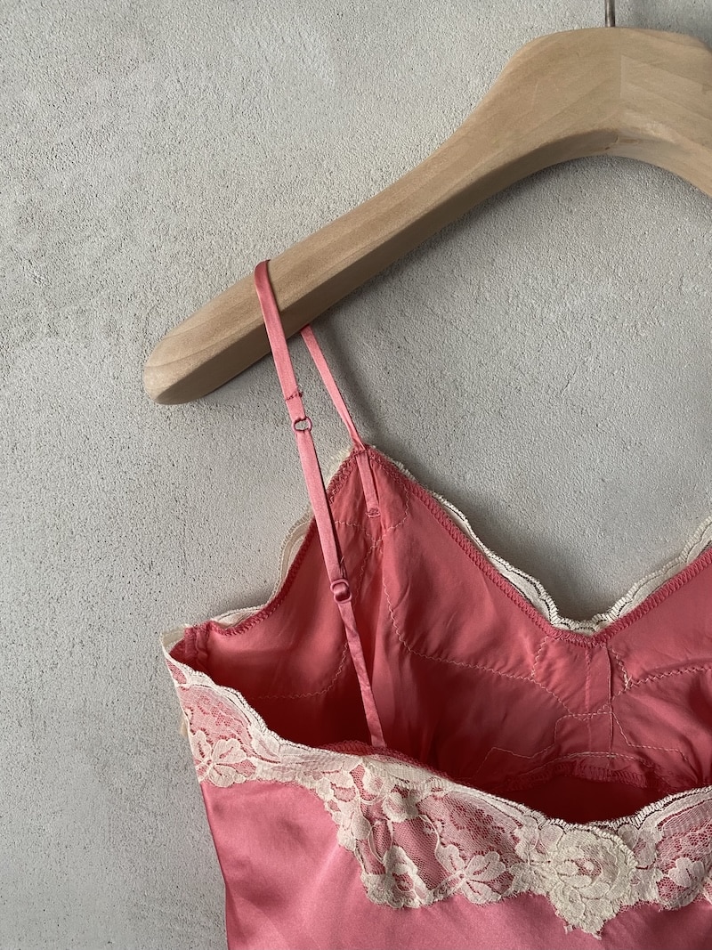 Top lingerie in raso con inserti in pizzo. Spalline sottili regolabili, scollo a V rifinito in pizzo floreale. Inserti in pizzo sul décolleté e sull’orlo. Linea morbida e femminile. Vestibilità regolare.