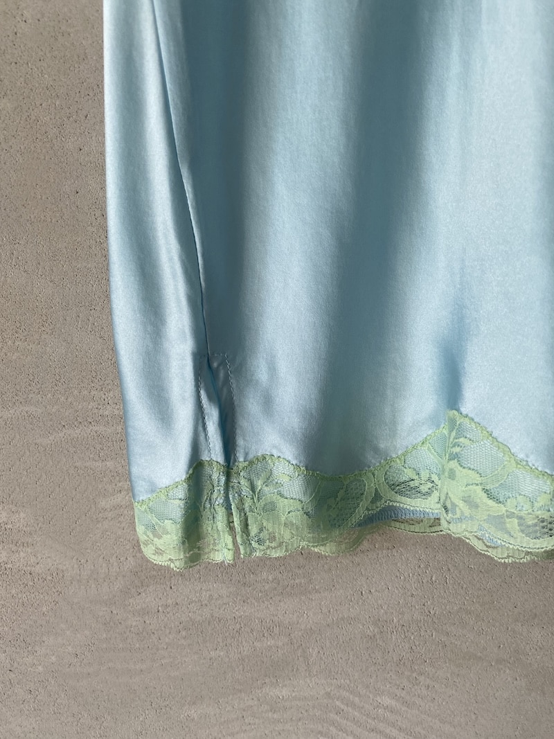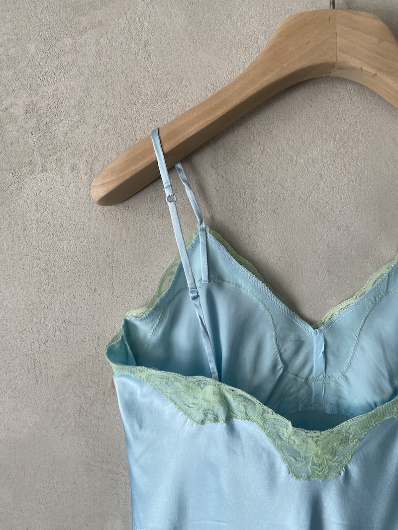 Top lingerie in raso con inserti in pizzo. Spalline sottili regolabili, scollo a V rifinito in pizzo floreale. Inserti in pizzo sul décolleté e sull’orlo. Linea morbida e femminile. Vestibilità regolare.